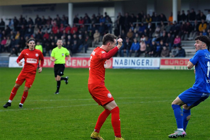 Die Siegendorfer Führung in der 24. Minute resuliert aus einem Bilderbuchangriff: Nach einem Solo spielt Uchiga auf der linken Außenbahn Eiba frei, dessen weitgezogene Flanke findet Sipöcz (Bild unten), und sein Kopfball landet unhaltbar im langen, linken Eck - 1:0!